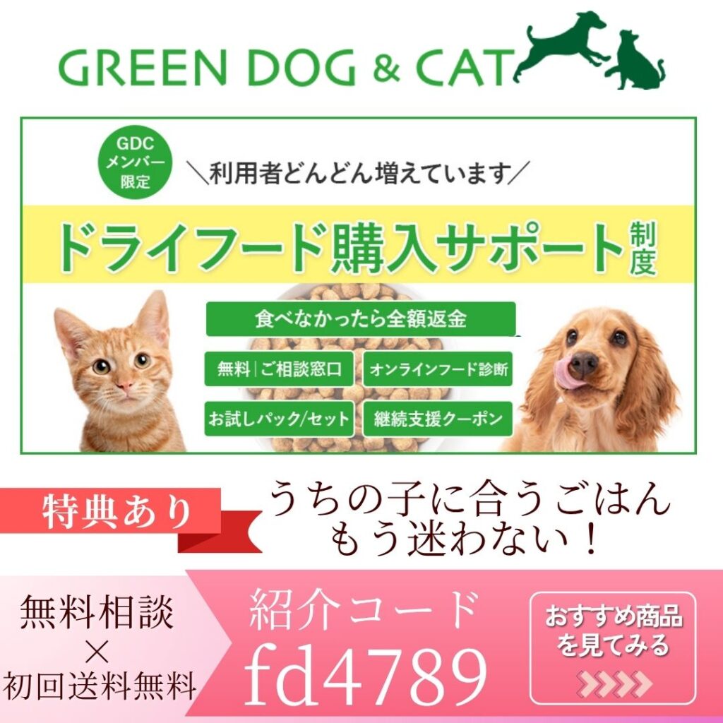 GDCメンバーには“6つの購入サポート”。ドライフード全額返金サポートや、専門家の無料食事相談「ごはんの窓口」、オンラインのフード診断、少量お試し・お試しセット、翌月クーポンまで。試しやすく続けやすい仕組みが整っています。ほどよい堂紹介コードでお得にゲット!紹介コード:fd4789