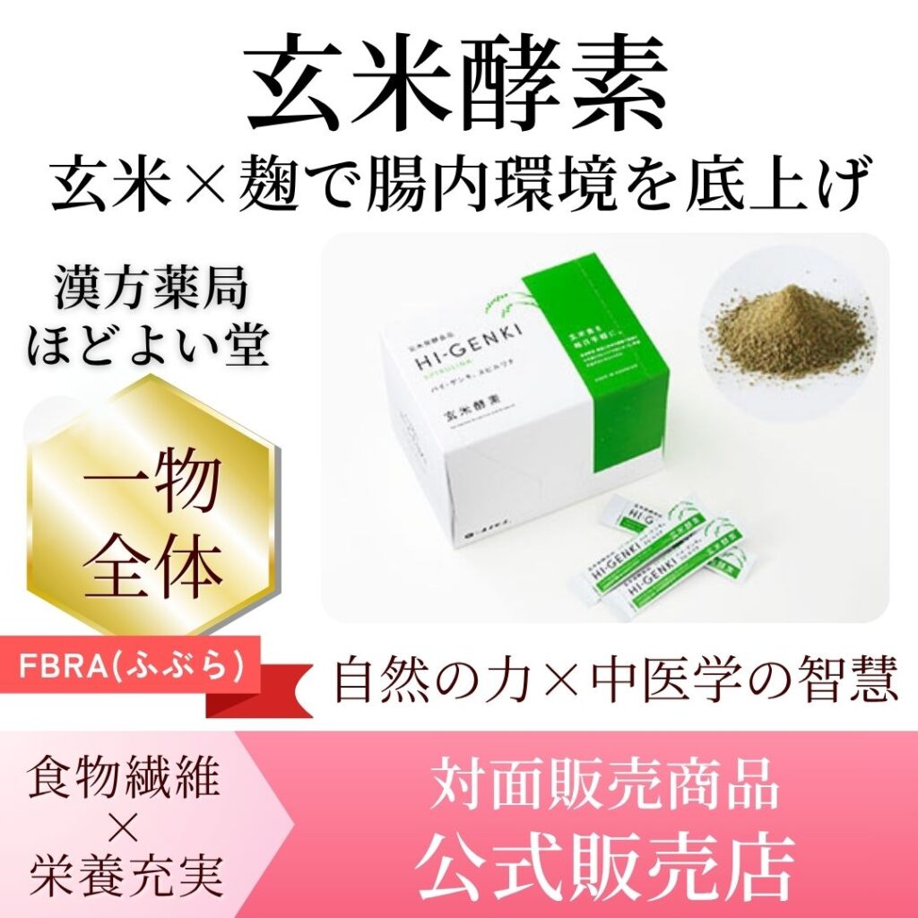 玄米酵素(ハイ・ゲンキ)は、玄米+米糠を麹菌(A. oryzae)で発酵したFBRA(フブラ)を中核に据えた発酵栄養食品ラインです。発酵により、玄米・米糠由来のビタミンB群・E、ミネラル、食物繊維、γ‐オリザノールを摂りやすく設計し、粉末・顆粒・タブレットなど多形態(スピルリナ配合品あり)を展開。マウスデータでは抗炎症・炎症関連発がん抑制の報告があり、ヒトでは“食品としての健康支援”の範囲で腸内の短鎖脂肪酸産生を後押しする示唆があるため、日々の食物繊維・発酵食と組み合わせる“土台づくり”に最適です。