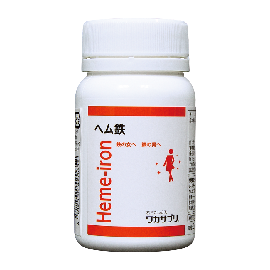 「ワカサプリ ヘム鉄」は、100%ヘム鉄を使用した、胃にもやさしい鉄分サプリメント。